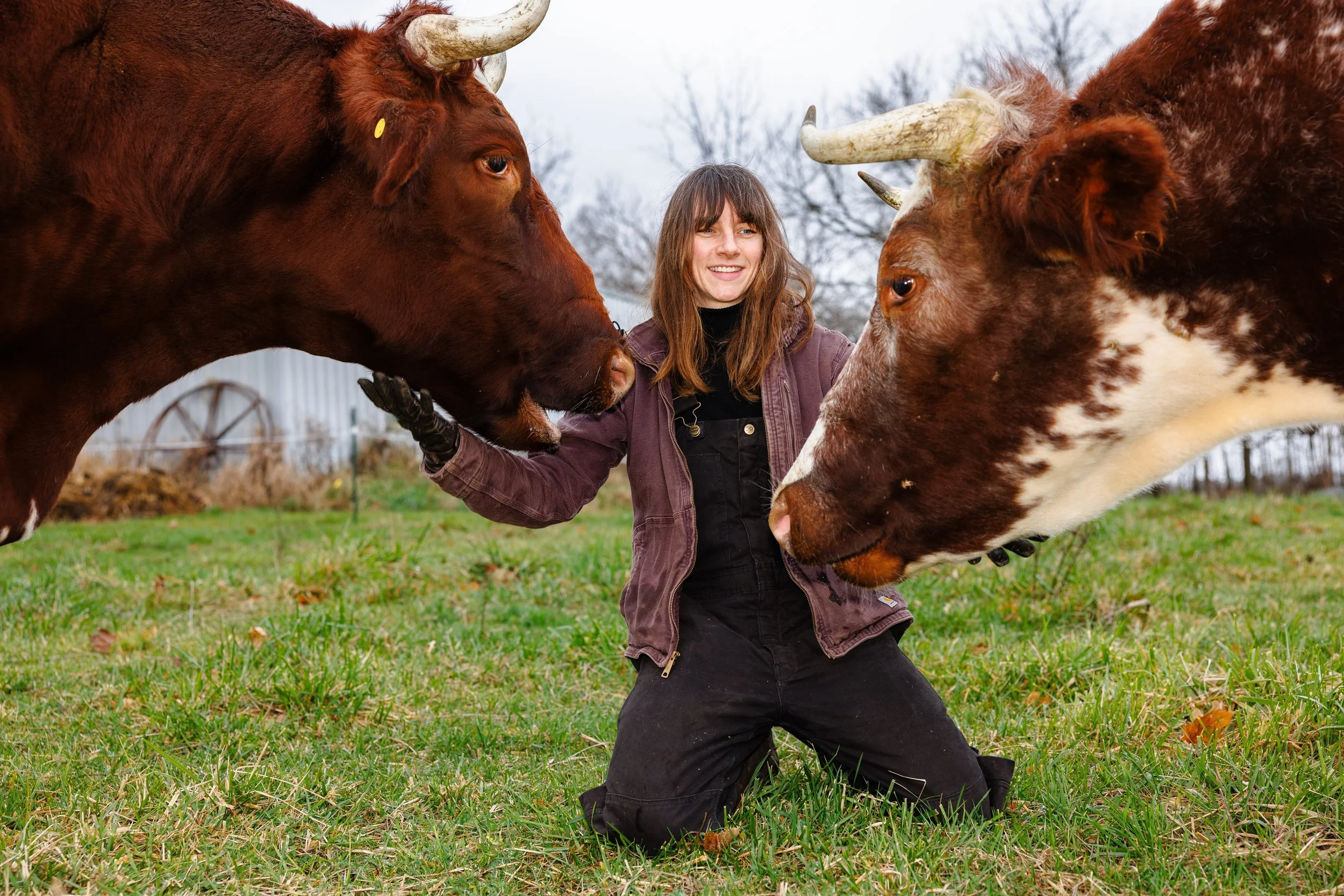 Ruth is an artist, professor, first-generation farmer, an ox drover, and sometimes horse teamster. Burke's creative practice revolves around ideas of human-animal kinship, most recently through a series of large-scale earthworks created with draft animal power. She is the proud steward of Clark & Sparky, a five year old team of milking shorthorn oxen. Ruth Burke is currently based in central Illinois where she owns and operates Oxeye Farm & Native Plant Nursery.