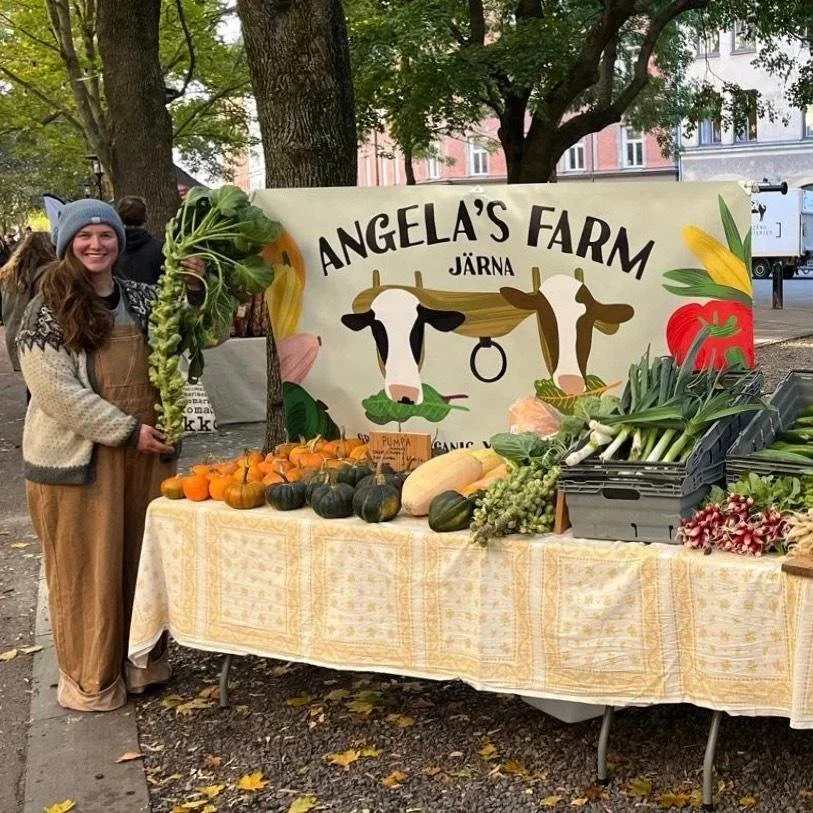 Angela Patterson is an environmentalist and market gardener based in Stockholm, Sweden. With a focus on biodiversity and sustainability, she works alongside her team of oxen to grow organic heirloom vegetables.